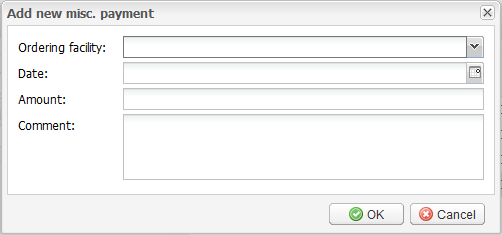Here you can choose Ordering facility, Date and amount of payment, and write down the comment if needed.